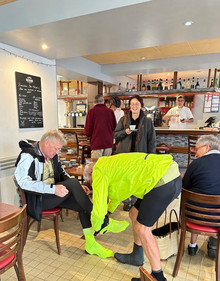 Their first pit stop was at Robert Whittle’s (the head organiser of these tours) café (The Hub and Spoke Café) in Bedfordshire.