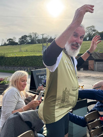 I was very kindly picked up later in the day and driven to Richmond by Gareth (who was a pathfinder in my group) and his partner Lisa, along with Dusty who was also doing the 3 day route. Shortly after we arrived at the Travelodge in Richmond the first cyclist groups started to arrive. The groups were split based on expected average speeds and each given a colour as the team name. Colin was in the Yellow group (15 mph) and I was in Team Blue expected to do a steady 12-13 mph. Team Rose, the speediest group, contained the former director of Rugby at Northampton Saints (Jim Mallinder) and former Saints and England rugby union player Nick Beal. Needless to day, Blue group didn't see much of this group on the road during the tour - just a blur as they flashed past us.