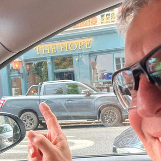 22 miles into the ride we had a welcome coffee stop at the beautiful village of Shere. Colin’s sister Sara, who sadly had to pull out of the ride due to a shoulder injury, met us there with a Ride for Hope sign (which continued with us for the rest of the trip) and some sweeties.