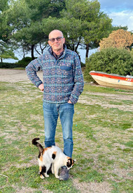 The forecast did as promised the following day and we finally got warm sunshine (up to 15 degrees) and light wind at last. We decided we shouldn't try to cycle from where we were parked as we didn't want to be covered in mud before we set off, so drove back to the main road. A dog came over to say hello, so we promised him dog biscuits if he did a good job at guarding Lolly. It felt wonderful to be back on the bikes - we'd not been on them since mid-December. The first half of the ride took us on a steady climb across the peninsular, and we had nice views over the deep blue sea. We passed through Nea Skioni again, and the only coffee place open was a rough and ready eatery with its quota of grumpy looking retired men gossiping and smoking.
