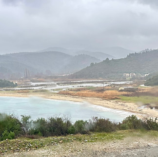 It rained heavily through the night and was still raining hard when we woke. We decided to continue east towards the Turkish border in search of better weather. It was a horrible day to drive - the roads were under water, it was windy and cool and we couldn't see much of the views along the coast.