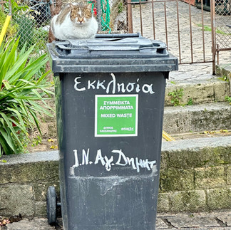 We had to bounce down a very rough wet muddy track to reach the spot by the sea, but it was beautiful (if you ignored the litter) and our only company was lots of cats - looking at them one Tom cat had been very busy in this area. While we see lots of stray dogs looking sad, the cats seem to thrive in Greece.