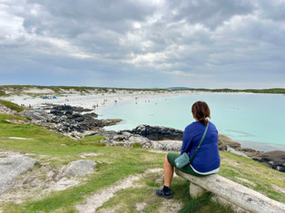 Leaving Clifden with clean clothes (just the one odd sock missing...) we continued our journey back on the WAW. This section wasn't quite as special as some stretches we've done, but we did have a wow at the Dogs Bay and Gurteen Bay beaches that sit back to back separated by a dog bone shaped sand spit. The aerial photo below shows what we can't without a drone. Both beaches have soft white sand and crystal clear waters, Dogs Bay being the more sheltered beach.