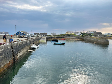 We wanted to find another peaceful scenic spot to park for the night so we took a spur on the WAW that took us over a series of small islands connected by bridges and causeways. They were quite sparsely inhabited and we kept going until we reached the tip of the last island (Lettermullan) where there was a small parking area with the most incredible views. There was a German campervan already parked up. There was a tower in the distance and we could see where people had been walking, but there were signs on all the gates saying 'private property'. We had read the owner charges 10 euros to park overnight and there was a number to call. I left a message on his voicemail and he did call back to say he'd call by later to collect the money. He also confirmed that we were free to go through the gates and enjoy the headland scenery. It was a beautiful spot with the evening light and sunset making it even more special. The owner was a pleasant chap and said he had to put the signs up as visitors kept leaving the gates open and he normally has cattle grazing there. We had to close the gates several times while we were there after other visitors failed to.