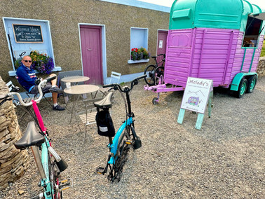 Clare Island sits just 3 miles off the coast and the ferry takes just 15 minutes to reach it. The island is only 8km long by 5km wide so most people rent bikes or walk it. After fuelling up on coffee and a fresh cinnamon bun we set off on the bikes. It was a glorious warm sunny day. We cycled up to the Napoleonic Signal Tower but we couldn’t get near it on bikes. We returned to another road that took us past an old Abbey then on to the lighthouse. It was quite a steep rocky track to reach it. There were lovely views from the cliffs here. On the way back down we stopped for a late lunch at an organic cafe before heading back to the harbour. It had been a great day, although we agreed Arranmore Island had the edge.