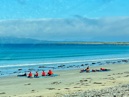 It was early evening by the time we got back to Lolly so we headed a short way to Carrowniskey Beach and got a frontline park up on the beach. It is yet another stunning Irish beach. There were surfers out although the waves weren’t that big and Colin wanted to get cold and wet so joined them. I opted for a hot shower in Lolly after I ensured he’d made it out of the water safely without his glasses. The lifeguard was also keeping a keen eye on him.