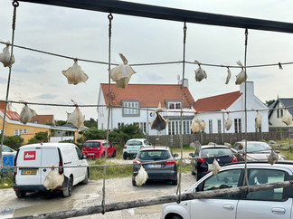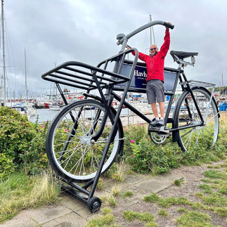It was a wet windy night, but it had stopped raining by the morning and it was a bit brighter. We carried on with our plan to do the bike ride. First hitch was Colin found my bike had a puncture. The tyres on my Ribble are a nightmare to get back on after fitting a new inner tube, so Colin had a battle but finally got it sorted. We eventually got on our way and reached Holbaek harbour to catch a 25 minute ferry to the island of Oro. We couldn’t believe it when we got off and noticed my tyre was down again. We had been impressed with the bike maintenance stations in Denmark, however the one at this harbour had a broken pump. Colin had another hard time changing my inner tube. He was most perplexed why it had gone down again, as he had been very thorough at checking for sharp objects left in the tyre and had found nothing. It was the same this time too. Colin borrowed a pump from the tourist office in the port and we set off for a cycle around the island. The distances weren’t far, but we soon could see the tyre was going down again. We were supposed to be catching a different ferry from the island to a point to cycle back to Hørby from. With no more inner tubes or gas cannisters to pump my tyres up, we realised we needed to go back to Holbaek to visit a bike shop, but there was only one that would be open until 3pm that Saturday afternoon. We had just missed a ferry so had and hour and a half to kill. Luckily there was a place doing food near the harbour and we had the most delicious fish cake and rye bread – every cloud….