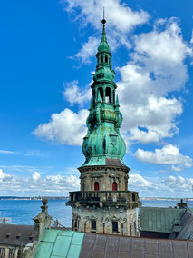 Frederik II (the Big Belly King’s father) built the more palatial castle for his wife between 1574-85, but, as with most fine buildings in Scandinavia, it largely burned down in 1629, and after being rebuilt by the Big Belly King, it was taken over and occupied by the Swedes who plundered much of its wealth. It was taken back but was never used as a a royal residence again and was largely used as a military base. Neither of us has read Hamlet, but we had a terrific short introductory talk from a guide to tell us the background of the Castle and how it came to be picked by Shakespeare for his play. It is believed Shakespeare never actually visited Kronborg, but he must have had some insider information on the decadent parties that were held in the castle, probably from some British play actors who were brought in as entertainment at the castle during Shakespeare’s lifetime. We had a nice walk around the key parts of the castle – the chapel, the casements, the old kitchens, to the rooftop with terrific views towards Helsinborg in Sweden and over Helsingør town, then in the state rooms in the building. It was great to see how engaged the children were who obviously knew something about Hamlet. They were given mysteries to solve and we could see them challenging actors sat at various areas of the castle.