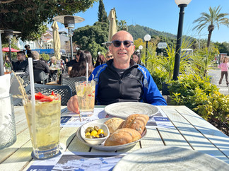 The following day (Sunday) we headed back to Fethiye as we had Lolly booked in for a service at the Iveco garage there on the Monday morning. En route we called in at a stunning harbour area at a town called Gocek. It oozed money with high end boats moored up and very nice looking restaurants buzzing with people enjoying the sunshine. We joined them for a spot of lunch before continuing on to Fethiye.