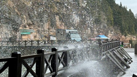 We had to drive all the way back to Trabzon to take a different road out to the monastery. We got to appreciate the views into the valley more on the way back down. Colin gave Lolly a jet wash, but I think he came off worse.