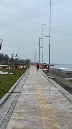 On a bleak cool day there wasn't much to keep us here, but we had a walk around the central area and along the waterfront. There is an ancient 550 year old plane tree in the main square and there were some grand looking old mansions in the town. We eventually decided to park for the night a few kms from the town centre at a dedicated motorhome parking spot by the beach. We'd spotted a cycle path which we thought would take us all the way back into town, but when we tried it, it finished for construction works just a couple of kms away. We'd read the motorhome parking was free if you don't plug in to the electric and water, but just as we'd got settled in, the caretaker of the site came and said we'd need to move unless we paid the €15 charge that had been implemented in 2026 regardless of whether you use electric or not. He was very apologetic and nice about it, but we moved to the free parking by the main road. We tucked ourselves in between two locals small caravans that looked like they were parked there permanently, but seemed to be unoccupied. Then a family arrived back at one of them, firing up their generator and had their TV on high volume. Hmmm - another noisy night in store. Actually they did switch it all off at a reasonable time.